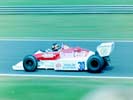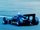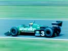 Michele Alboreto slows his Tyrrell 011 at the end of Hangar Straight before rounding Stowe corner.