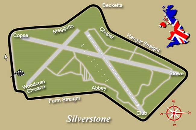 This is a map of the Silverstone circuit in 1983. It was super fast and hadn't changed since 1975.